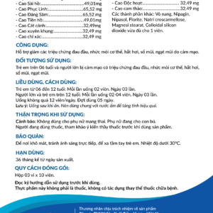 Hỗ trợ giảm các triệu chứng đau đầu, nhức mỏi cơ thể, hắt hơi, sổ mũi, ngạt mũi do cảm mạo